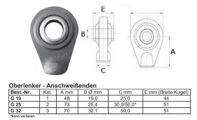 Gewinde-Oberlenker KAT. 1-2 Standard