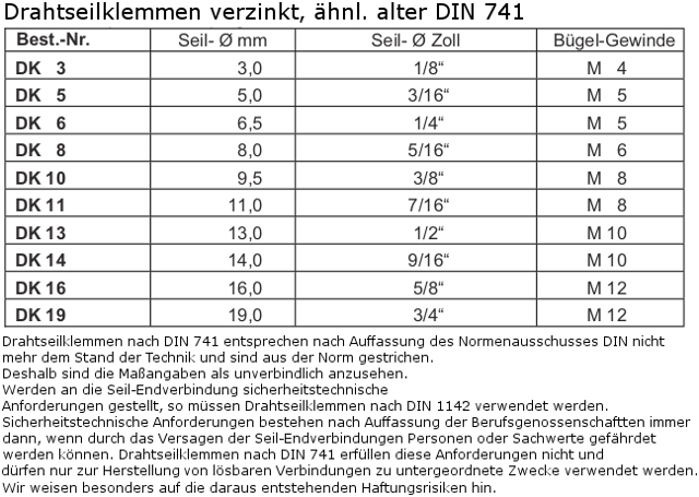 Drahtseilklemme verzinkt, ähnl. früherer DIN 741 für Drahtseil 6,0 mm