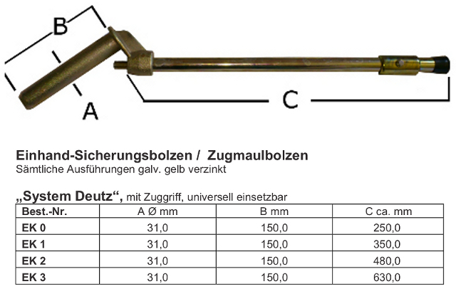 Einhand Sicherungsbolzen System Deutz