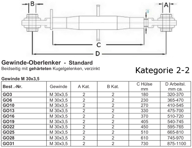 Gewindeoberlenker GO22 - KAT 2-2 / 450