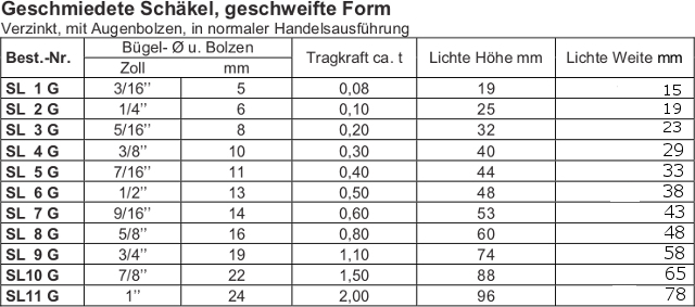 Schäkel verzinkt handelsüblich, geschweifte Form