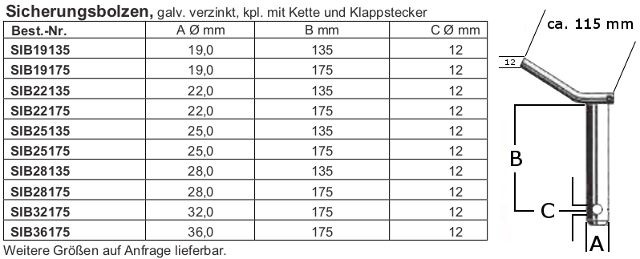 Sicherungsbolzen 22 x 135 mm, verz., SIB22135
