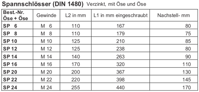 Spannschloß vz. DIN 1480, M12, Öse-Öse