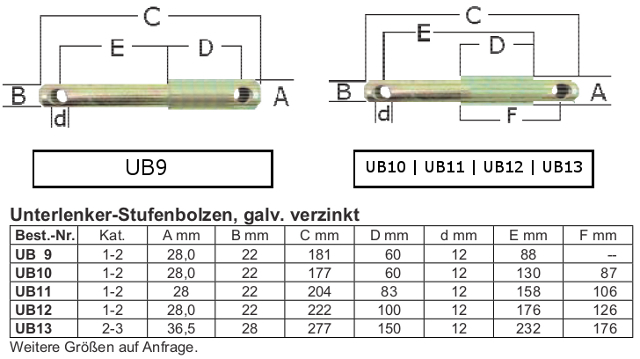 Unterlenker Stufenbolzen, KAT. 2-3, -UB13-